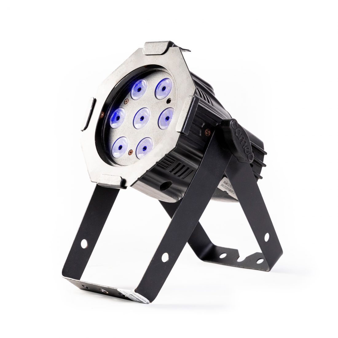 Professioneller Mini-PAR im stabilen und kompakten, schwarzem Gehäuse. Als Leuchtmittel kommen dabei sieben superhelle 3 Watt TRI Color LED zum Einsatz, der Abstrahlwinkel liegt bei 25 Grad. Das solide, kompakte Gehäuse verfügt über einen doppelten Bügel zur Montage in Traversen und an Bars sowie zum Einsatz als Floorpar und ist damit ideal für Ambiente-Beleuchtung geeignet!